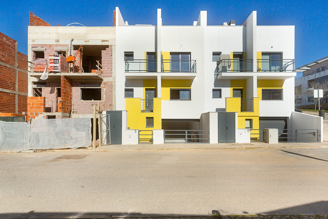Composto por diversas moradias geminadas com garagem, logradouro e quintal